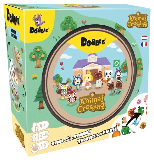 Dobble est un jeu de cartes, d’observation et de rapidité avec 55 cartes rondes, chacune ayant 8 symboles. Le but est de trouver le seul symbole identique entre deux cartes plus vite que les autres joueurs. Il existe différents mode de jeu. Cette version est basée sur le jeu vidéo Nintendo Animal Crossing